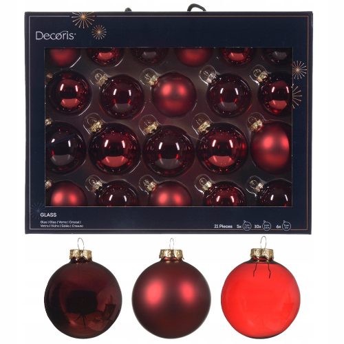 Set di palline di vetro per l'albero di Natale Set di palline di colore bordeaux. 21 pezzi.