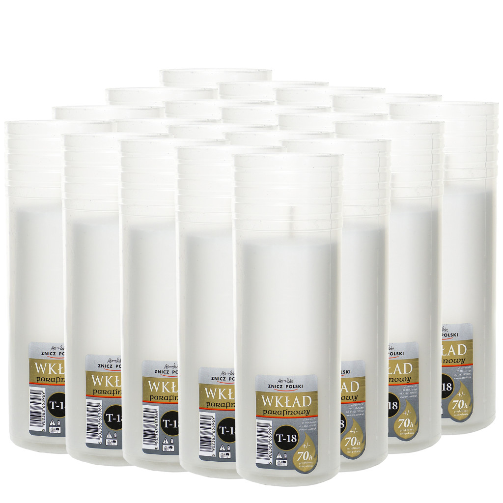 Wkład parafinowy prasowany do zniczy 70h T18 100% parafiny (20szt)