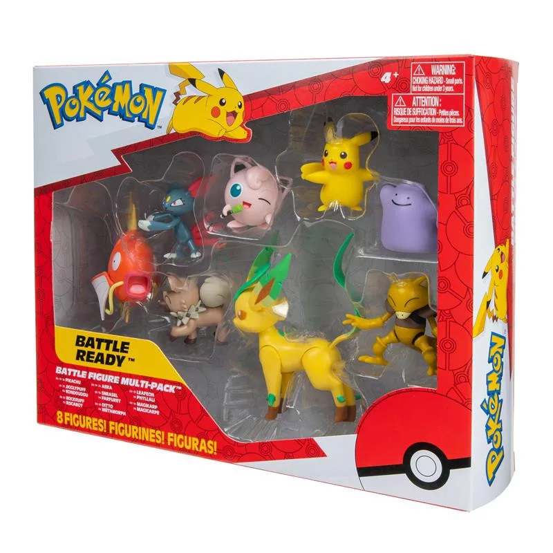 W zestawie znajdziesz takie Pokémony jak Pikachu, Jigglypuff, Rockruff, Abra, Sneasel, Ditto, Leafeon i Magicarp. Ich figurki zostały bardzo starannie wykonane i są idealne do zabawy, bitwy i ustawienia na półce.