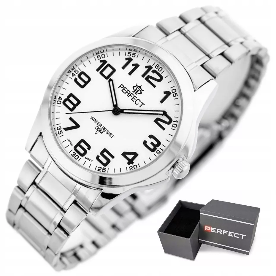 ZEGAREK MĘSKI PERFECT WILSON srebrny cyfry czytelny + BOX + GRAWER