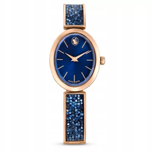 • Nazwa modelu: Swarovski Zegarek owalny Crystal Rock, wykonany w Szwajcarii, metalowa bransoletka, niebieski, wykończenie w kolorze różowego złota