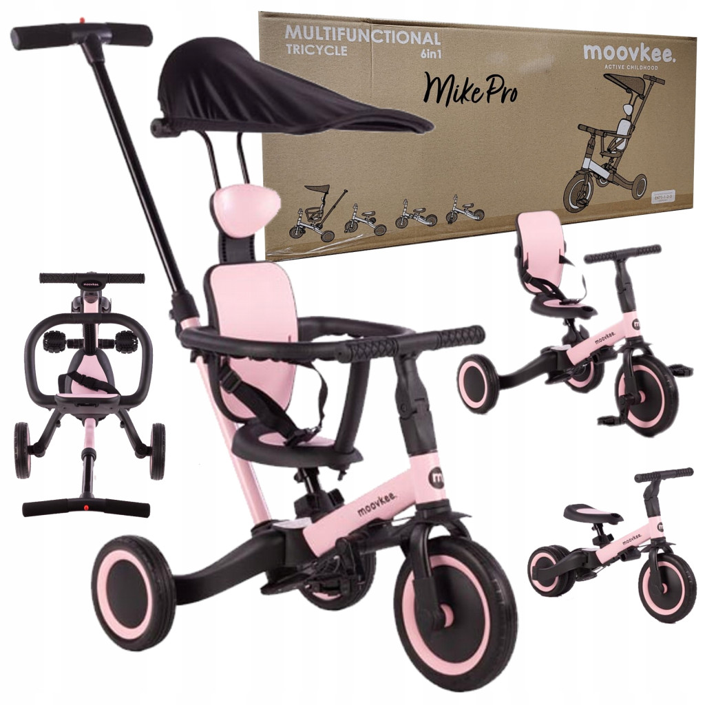 TRICICLO BILANCIATO 6in1 MOOVKEE MIKE PRO, tettuccio, GUIDA, cinture