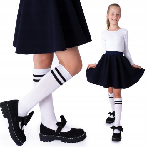Zastosowanie: Dziewczęce podkolanówki bawełniane białe z czarnymi lampasami są wszechstronne i praktyczne: