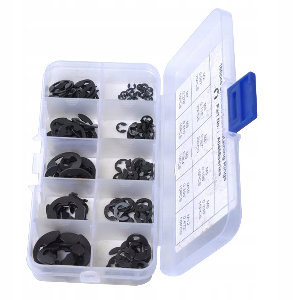 Each clip is constructed of durable spring steel and has a black oxide finish to resist rust and corrosion. The complete set of durable snap rings comes organized in a divided case for easy portability, storage and quick identification.