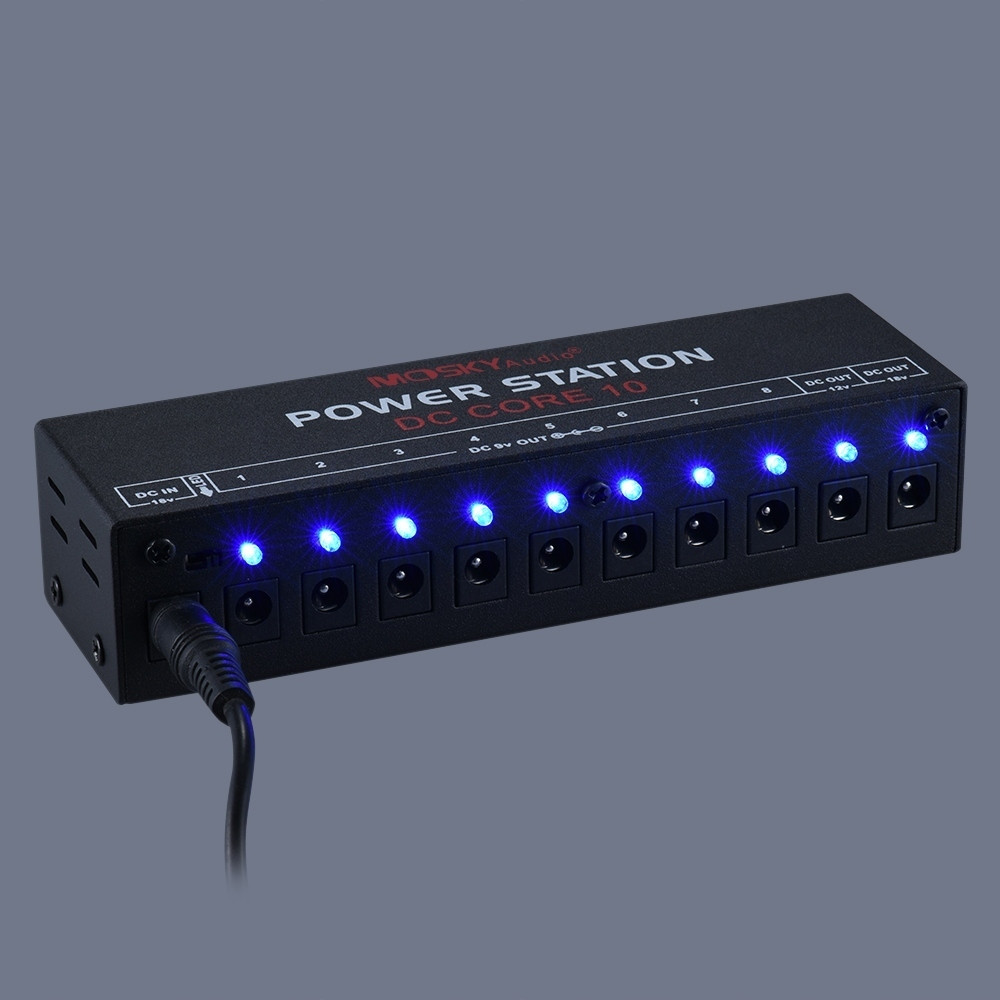 Zasilacz efektów gitarowych z 10 izolowanymi wyjściami: 8*9V; 1*12V; 1*18V.