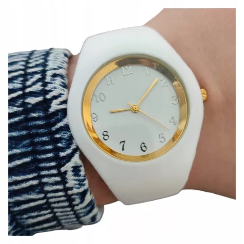 ✔️ Elegancki złoty zegarek na białym silikonowym pasku HIT