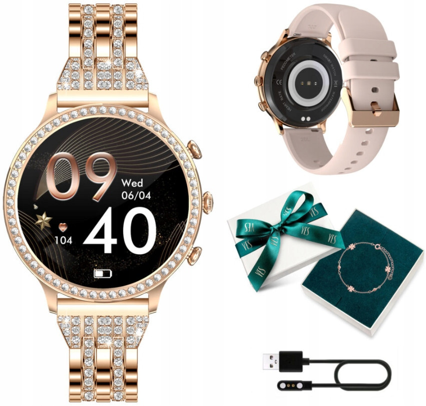 W zestawie ze smartwatchem damskim znajduje się piękna bransoletka od renomowanej firmy biżuteryjnej YES, dodająca jeszcze więcej uroku i elegancji całemu zestawowi. Ta ekskluzywna bransoletka jest starannie wykonana z wysokiej jakości materiałów i detali, co sprawia, że stanowi idealne uzupełnienie dla stylizacji każdej kobiety. Dzięki tej bransoletce, noszenie smartwatcha staje się jeszcze bardziej luksusowym doświadczeniem, pozwalając kobietom wyrazić swój wyjątkowy styl.