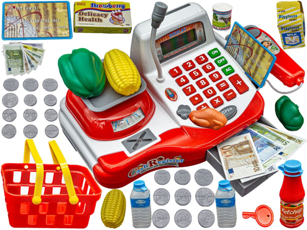 EDUKACYJNA KASA FISKALNA SKLEPOWA GRA DLA DZIECI KALKULATOR WAGA AKCESORIA