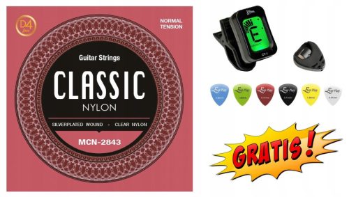 Wybór odpowiednich strun do gitary klasycznej jest sprawą bardzo ważną, ponieważ im lepsze struny tym lepsza jakość dźwięku, a należy pamiętać, że każdy model strun jest inny. Oczywiście nie trzeba kupować najdroższych strun aby cieszyć się pięknym brzmieniem. Przykładem niedrogich strun, które potrafią zachwycić są struny MCN-2843 Normal Tension, które brzmią bardzo czysto i naturalnie oraz nie sprawiają problemów z dociskaniem, przez co są także dobrym wyborem dla początkujących gitarzystów. Dodatkową zaletą tych strun jest także zapasowa struna D4.