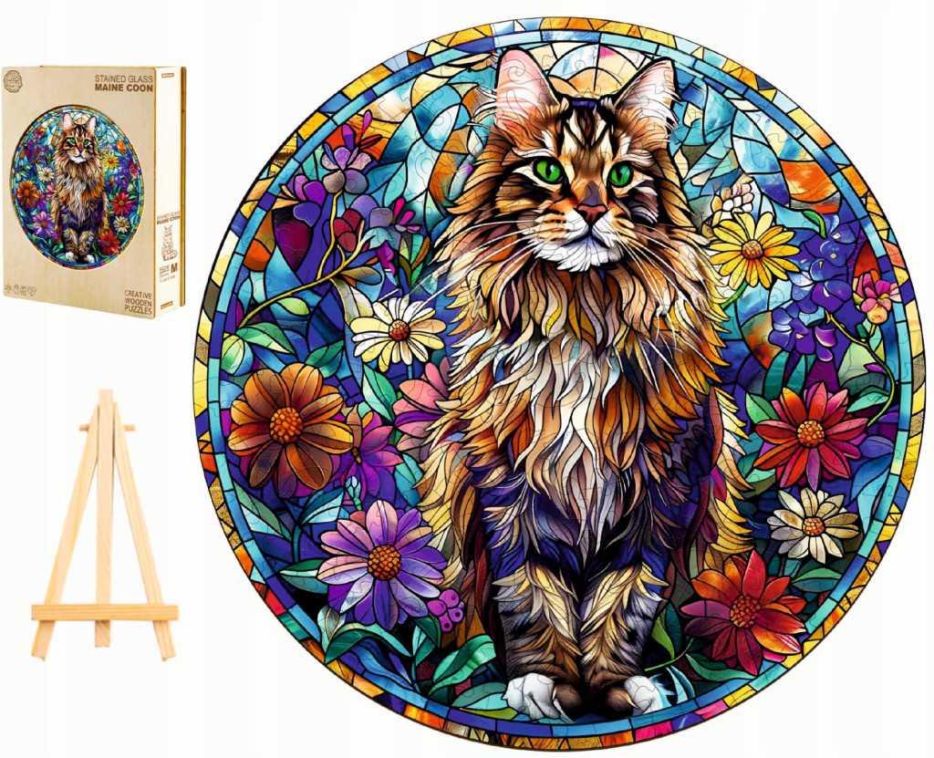 DREWNIANE PUZZLE DLA DOROSŁYCH DUŻE MAIN COON WITRAŻ