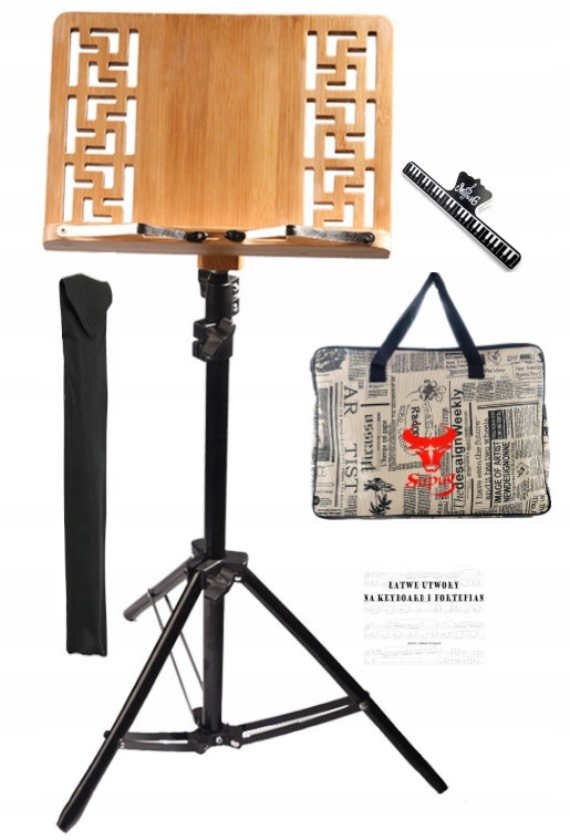 • w zestawie: pulpit, torba, pokrowiec na statyw, klips do nut, nuty "Łatwe utwory na keyboard i fortepian".