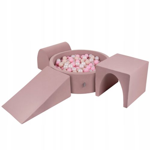 PPZP-OK30D-124-568 KiddyMoon Piankowy plac zabaw PPZP-OK30D-124 z piłeczkami wrzosowy: pastelowy beż-pudrowy róż-perła basen 300/klin L/górka/tunel Zabawka plac zabaw