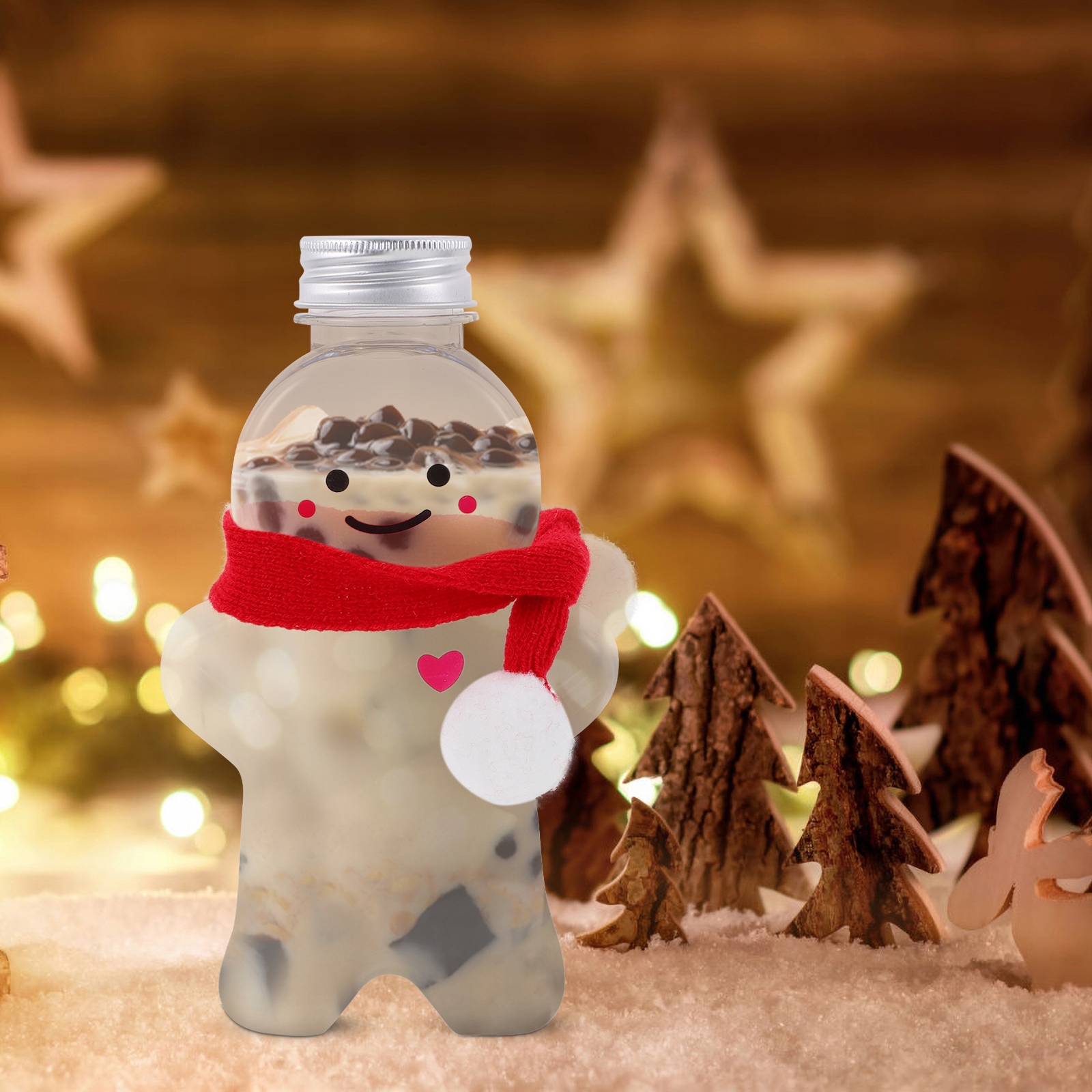 Świąteczne butelki na napoje to wielofunkcyjna butelka na napoje w kształcie świątecznego piernika wykonana z wytrzymałego materiału PET, trwała i wystarczająco praktyczna. Może służyć jako pojemnik na mleko, wodę itp. Pokrywka zapewnia hermetyczne zamknięcie do przechowywania płynów i jest dobra do przechowywania napojów. Nadaje się na przyjęcie świąteczne i przyjęcie urodzinowe itp.