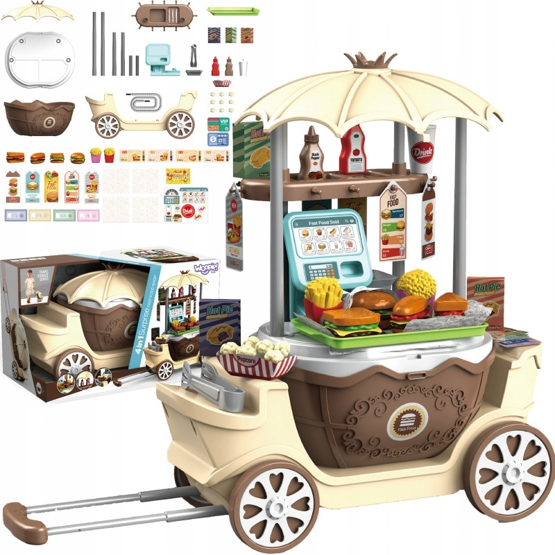 WOOPIE Sklep Fast Food na Kółkach Wózek Walizka 59 akc. 4w1