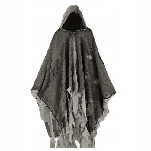 Mający kaptur i misterne detale z siateczki na zewnętrznej warstwie, ten płaszcz emanuje upiorną atmosferą Halloween, idealny na imprezy tematyczne i nawiedzone domy.