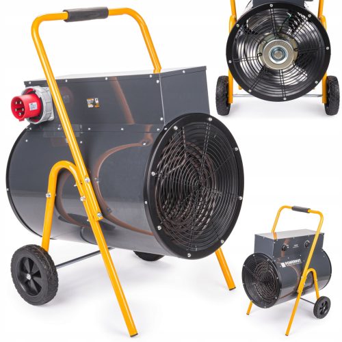 Nagrzewnice elektryczne tego typu wyposażone są w liczne usprawnienia, mające również znaczący wpływ na bezpieczeństwo użytkowania. Posiadają system chroniący silnik przed przegrzaniem. Co więcej, ich kompaktowa konstrukcja oraz znajdująca się na górnej części solidnej obudowy rączka, zdecydowanie ułatwiają przenoszenie. Zimne powietrze jest zasysane do urządzenia przez wentylator i kierowane w stronę wylotu nagrzewnicy, gdzie ogrzewane jest przez wysokiej jakości grzałki. Ciepłe powietrze wylatuje przodem.