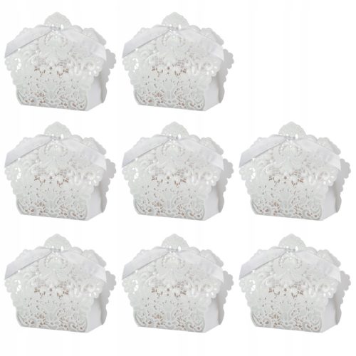 ✅50 x pudełka na prezenty weselne Pudełko z papieru kraftowego na prezenty Cukierki Słodycze ze wstążkami (białe)