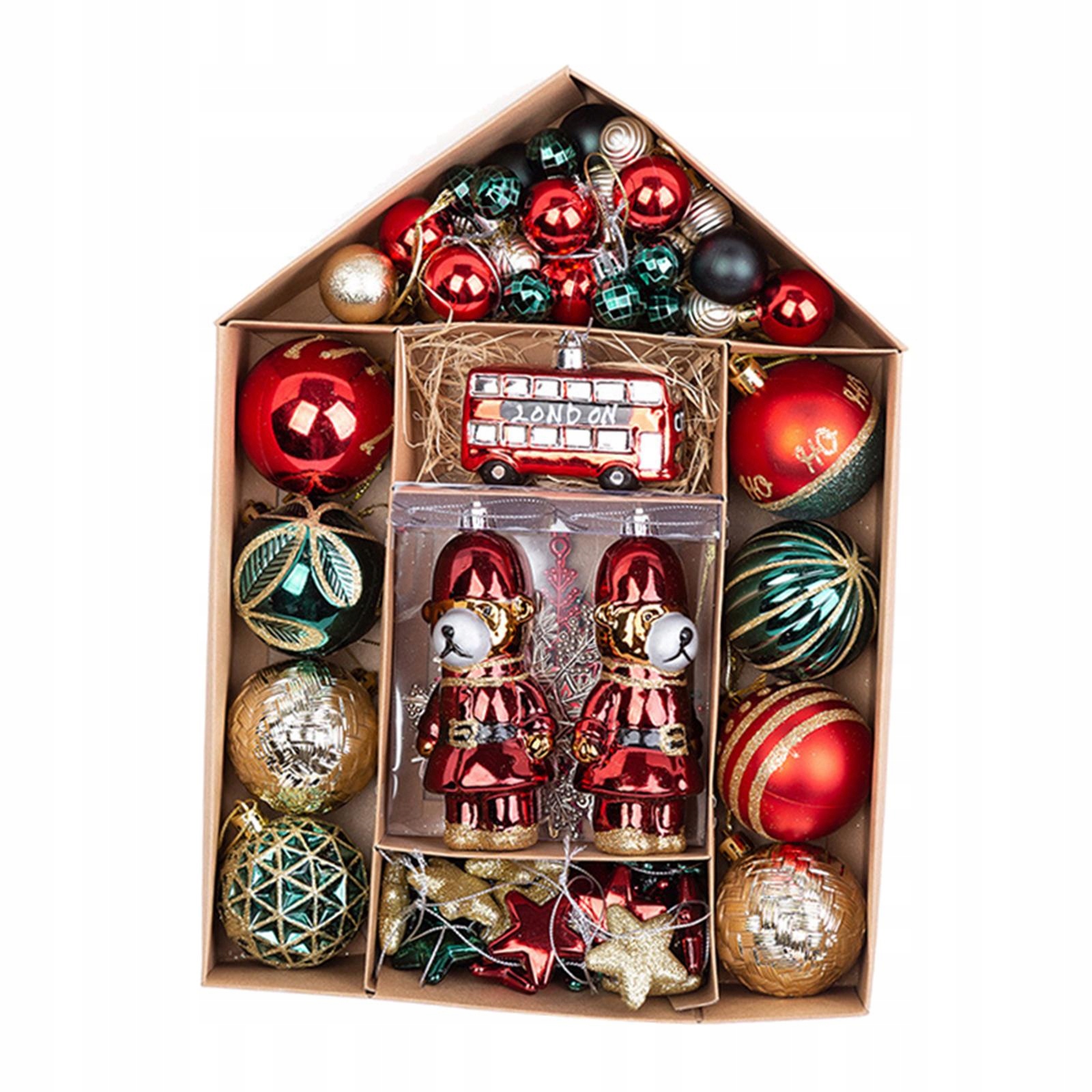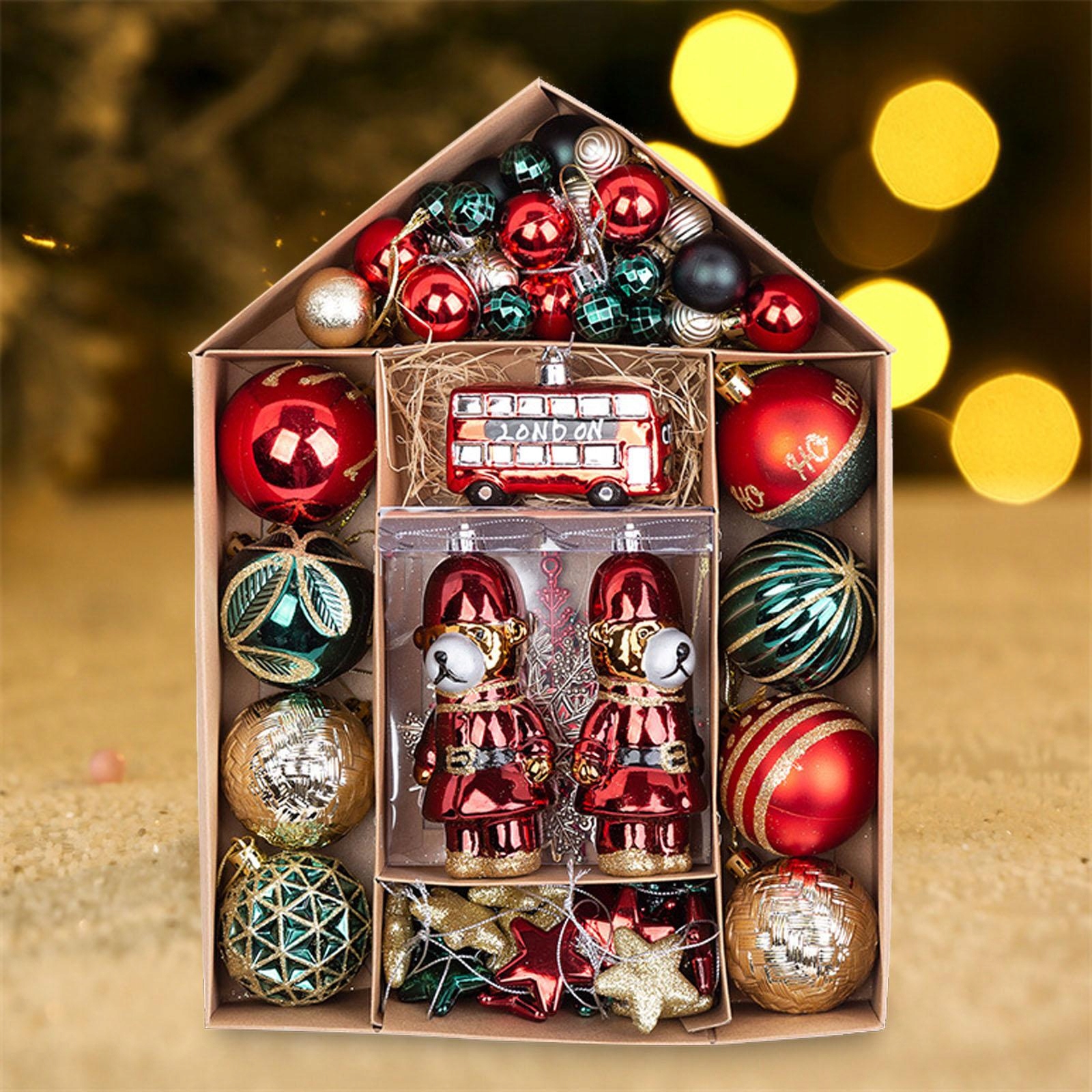 [Pakiet zawiera]: otrzymasz kulki, wisiorki itp. Ozdoby świąteczne z wiszącymi klamrami wystarczą, aby udekorować choinkę i stworzyć wesołą świąteczną atmosferę.
