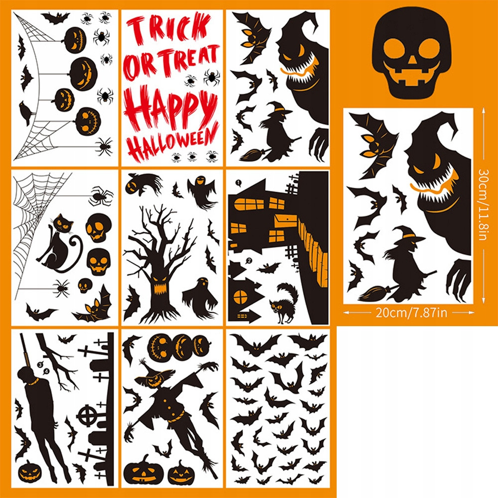 SZEROKIE ZASTOSOWANIE: Kreatywne naklejki na okna nadają się do szklanych okien, drzwi, luster, lodówek, wanny i innych gładkich powierzchni . Idealny na imprezę halloweenową.