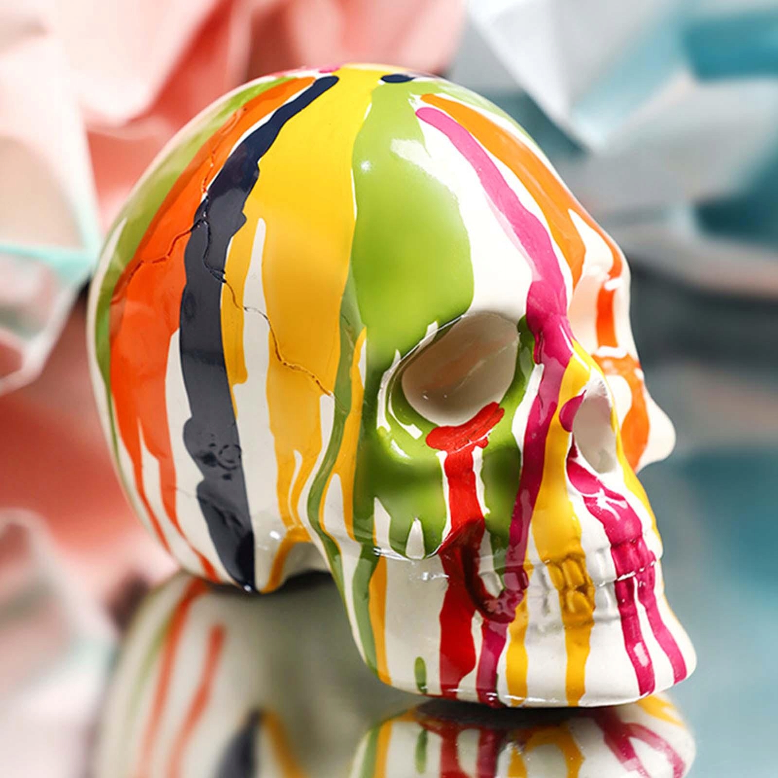 Material: Made of resin, modern simple painted skull statue