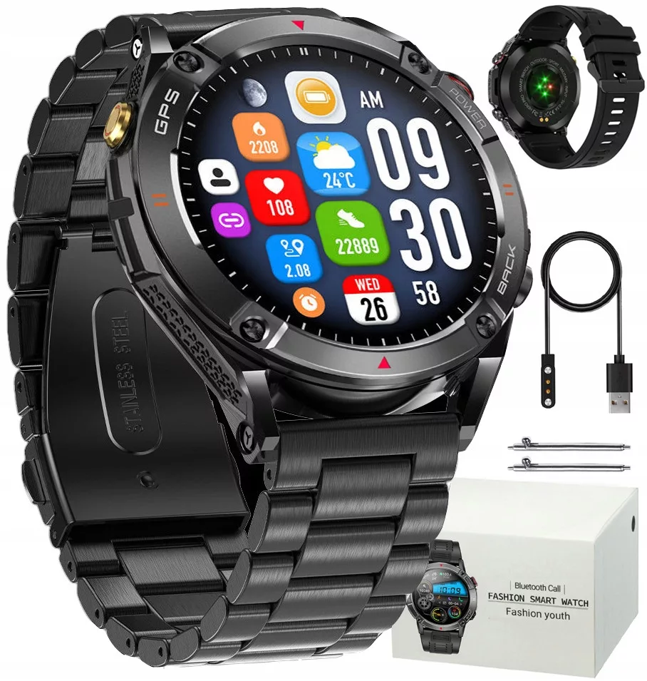 SMARTWATCH Zegarek Męski GPS 650MAH ROZMOWY BAROMETR KOMPAS SATURACJA