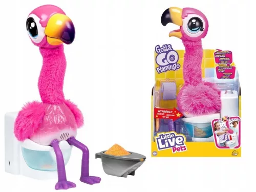 • w zestawie znajduje się flaming, toaleta, jedzenie, łopatka, instrukcja, baterie