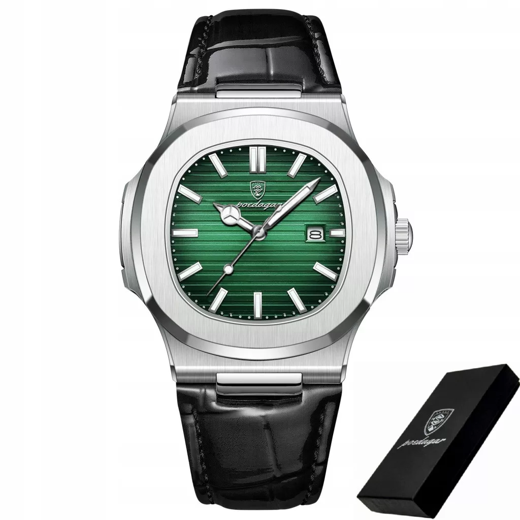 POEDAGAR ELEGANT OROLOGIO DA UOMO CON CINTURINO IN PELLE, SCATOLA, DATARIA