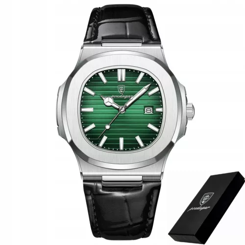 Zegarek męski POEDAGAR 613 SREBRNY ZIELONY CZARNY LAKIEROWANY PASEK