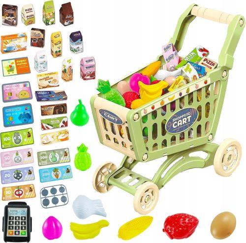 GIOCATTOLO EDUCATIVO PER BAMBINI MONTESSORI SHOPPING SET PASSEGGINO FRUTTA REGALO