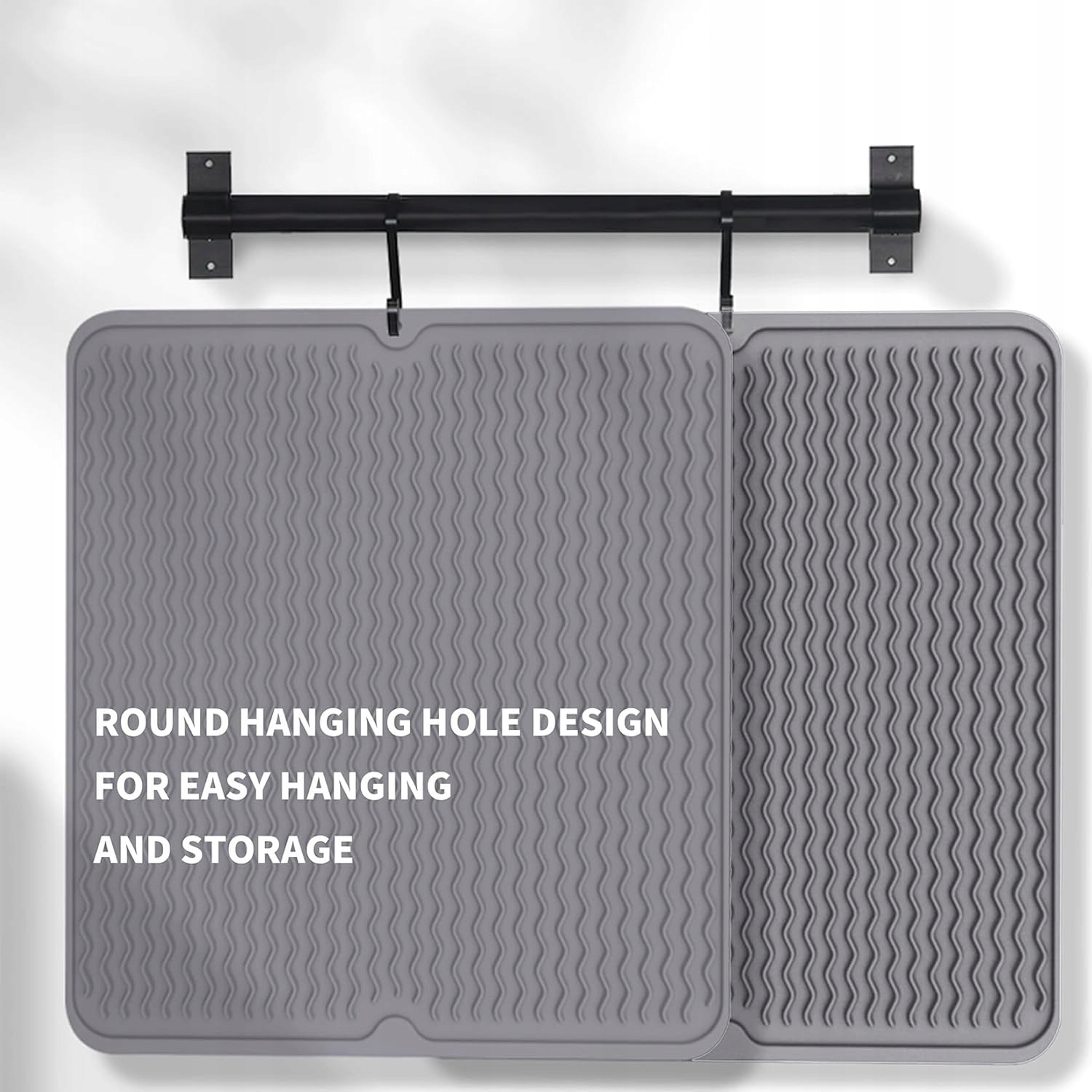 Wystarczy umyć pod bieżącą wodą. Elastyczny i miękki materiał umożliwia łatwe zwinięcie maty ociekowej i przechowywanie w szafie lub witrynie lub powieszenie do przechowywania bez zajmowania miejsca. Nadaje się do wielu miejsc, w tym blatów kuchennych, stołów jadalnych, restauracji, kawiarni, kamperów, przyczep kempingowych itd.