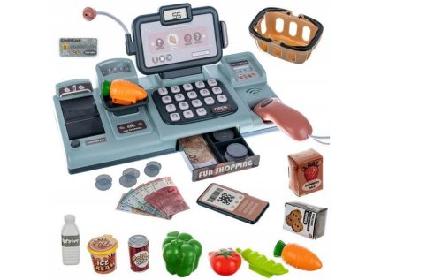 Edukacyjna sklepowa kasa fiskalna - mikrofon, waga, koszyk, akcesoria