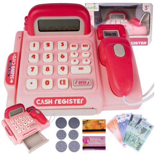 • Realistyczne funkcje: dźwięki skanera, kalkulator i otwierana szuflada na pieniądze