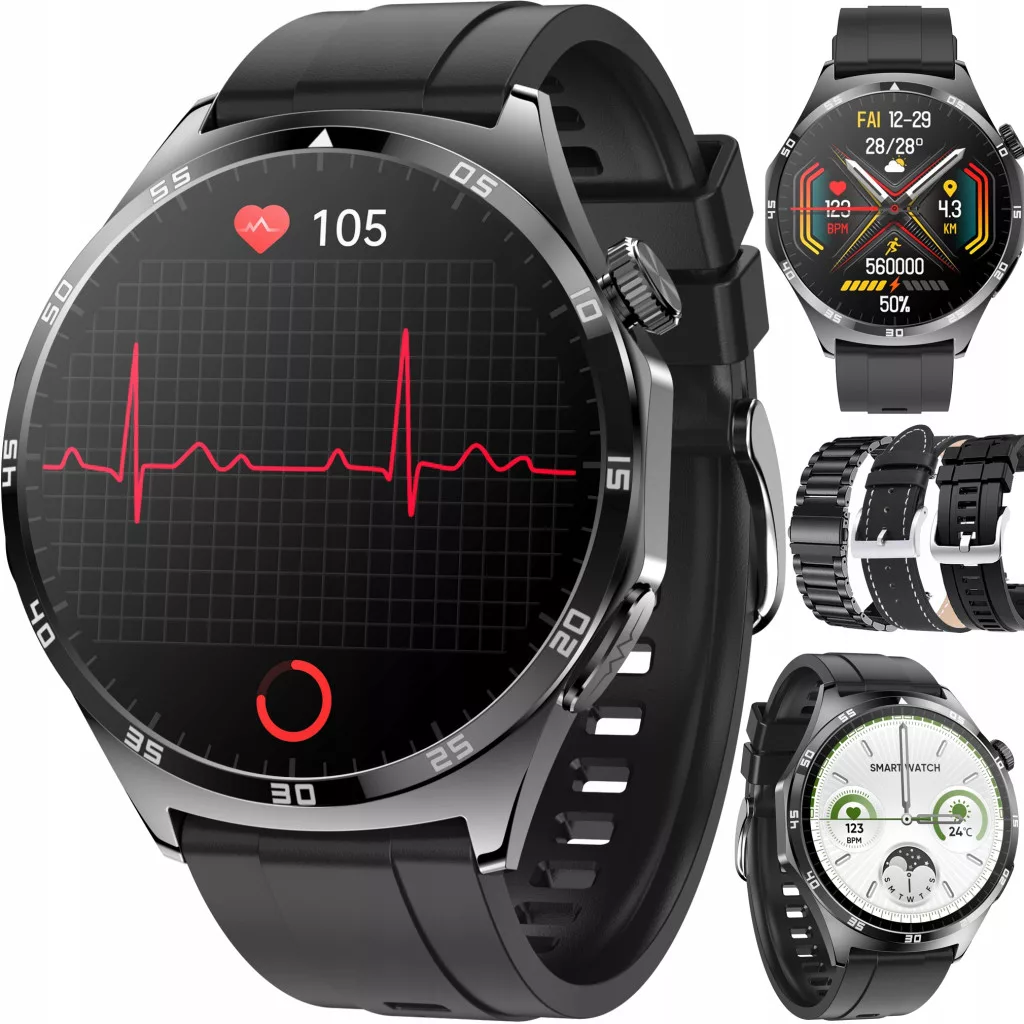 Prezentujemy elegancki Zegarek KARDIOWATCH Glukoza EKG z nowoczesnym ekranem dotykowym wykonanym w technologii AMOLED, ROZMOWAMI, długim czasie pracy na jednym ładowaniu oraz wieloma funkcjami sportowymi i zdrowotnymi.