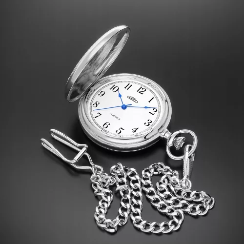Model wyposażony jest w okienko, które umożliwia widok pracy mechanizmu. Panowie docenią tarczę z podwójnie nadrukowanymi indeksami uzupełnionymi delikatną skalą minutową. Klasyczny wygląd zegarka kieszonkowego uzupełniają wskazówki łopatkowe. Mechanizm 2650SS (chromowany) o częstotliwości 21 600 A/h i rezerwie chodu do 30 godzin.