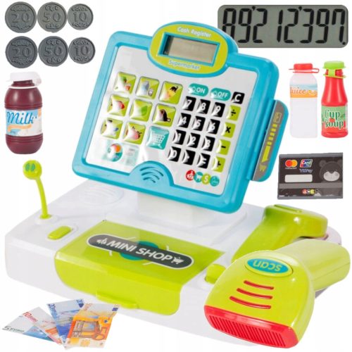 ❇️ Kolorowa Dotykowa kasa fiskalna z bogatym wyposażeniem i mikrofonem to świetny sposób na zabawę oraz naukę liczenia! Wyposażona jest we wszystkie niezbędne akcesoria kasjera posiada m.in. skaner kodów kreskowych,otwieraną szufladkę na pieniądze czy terminal na kartę płatniczą.