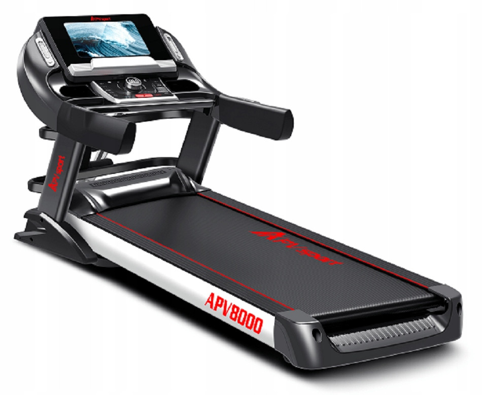 Najwyższej klasy bieżnia APV8000 oferuje wszystko, co użytkownik może znaleźć w najlepszej siłowni: długi i szeroki pas biegowy, kompletne wyposażenie oraz najnowszą technologię.