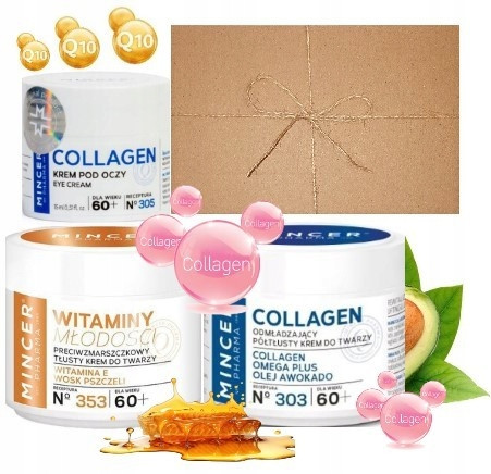 MINCER Krem 60+ 3 SZTUKI Kolagenowy pod OCZY ODŻYWCZY KOLAGEN na PREZENT