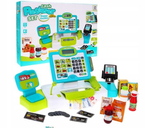 Kasa posiada dotykowy panel, kalkulator, atrapę czytnika kart, atrapę wagi, atrapę mikrofonu, atrapę skanera, otwieraną szufladkę na banknoty i monety.