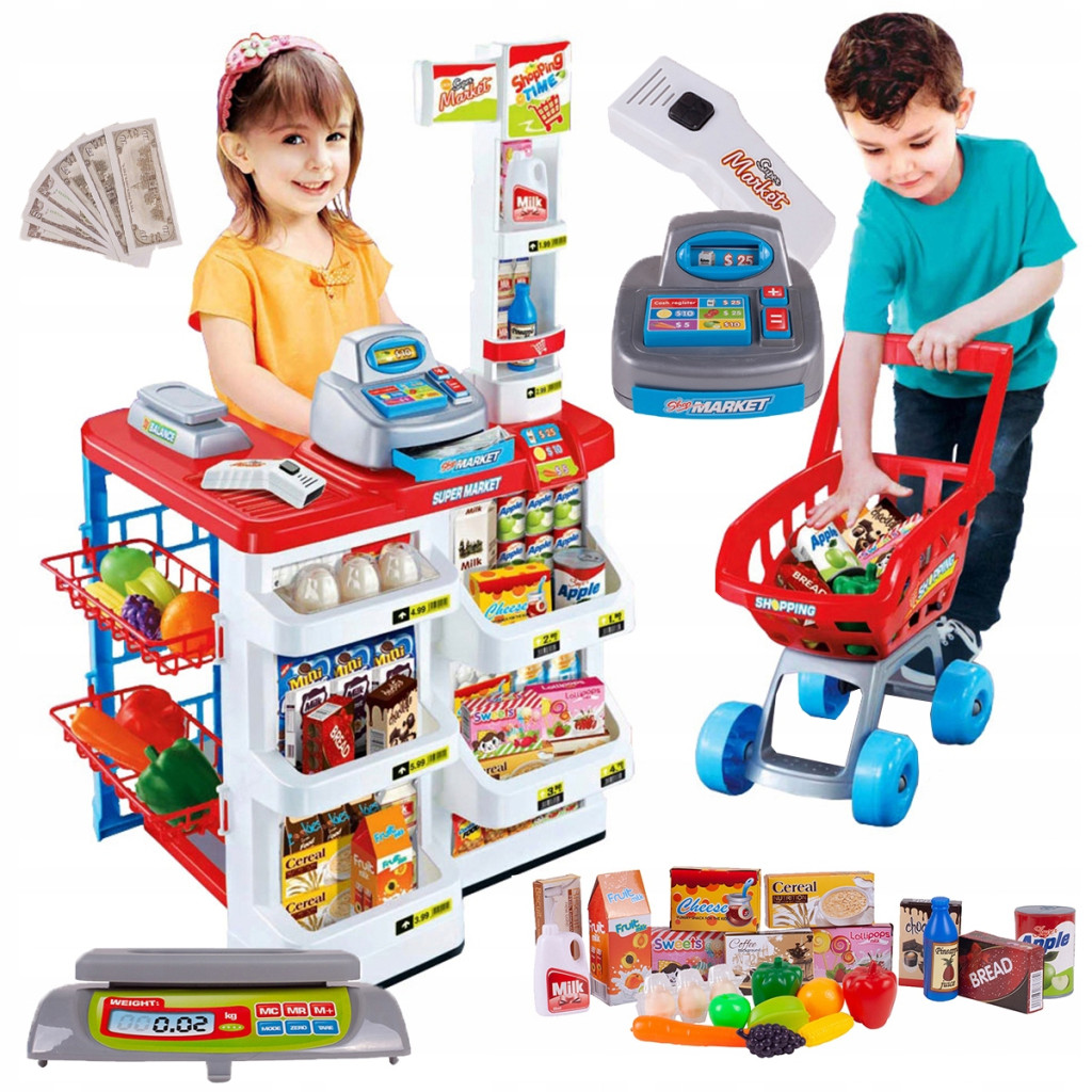 EDUKACYJNY DUŻY SUPERMARKET ZABAWKOWY DLA DZIECI Z WÓZKIEM I AKCESORIAM.