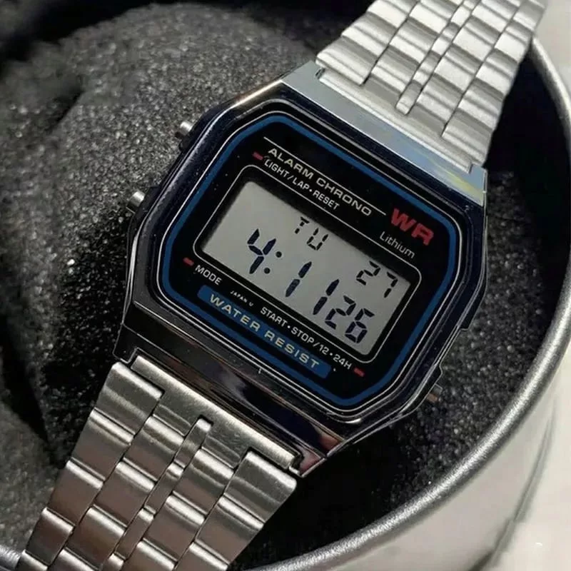 Orologio digitale classico retrò come quello della Repubblica popolare polacca, tipo Montana WR, ARGENTO