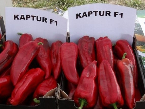 KAPTUR F1 wczesność, wysoki plon, doskonała jakość owoców Odporności: HR TMV L1 Owoce: » rozmiar owocu 18-20 cm / 6-7 cm » waga owocu 160-180 g, kształt 2-3 komory » grubość miąższu 6-6,5 mm » kolor: niedojrzały owoc ciemnozielony, dojrzały w głębokiej czerwieni Siła wzrostu: » rośliny charakteryzują się silnym wigorem » pokrój roślin oraz silny system korzeniowy ograniczają wrażliwość roślin na stres Typ uprawy: odmiana wczesna, przeznaczona do uprawy tunelowej i polowej Uwagi: » dobre zawiązywanie owoców i duży rozmiar owoców umożliwiają uzyskanie wyższego plonu » pokrój rośliny, silny wigor i dobre okrycie liśćmi ograniczają występowanie oparzeń słonecznych na owocach » bezpieczniejsza uprawa w trudniejszych, nawet chłodniejszych warunkach