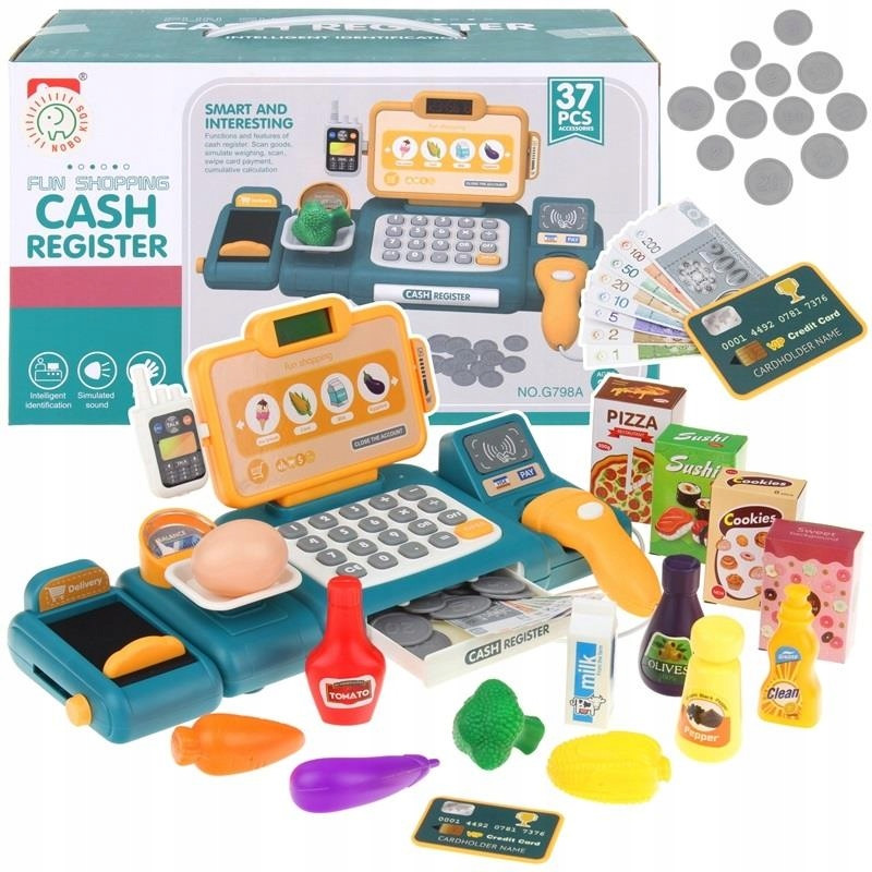 Edukacyjna Sklepowa Kasa Fiskalna Waga Koszyk Czytnik Kodów Monety