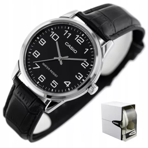 ZEGAREK MĘSKI CASIO APOLLO +BOX +GRAWER skórzany cyfry czarny klasyczny