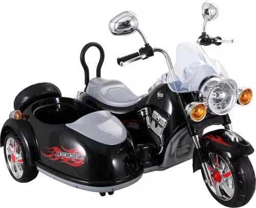 Motor posiada kosz boczny z pasami bezpieczeństwa w którym można wozić pasażera do 10 kg wagi.