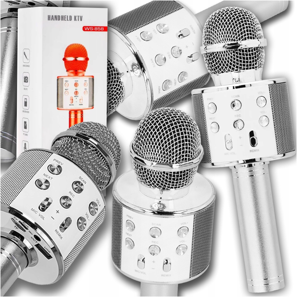 MICROFONO KARAOKE SENZA FILI ALTOPARLANTE BLUETOOTH REGALO ARGENTO