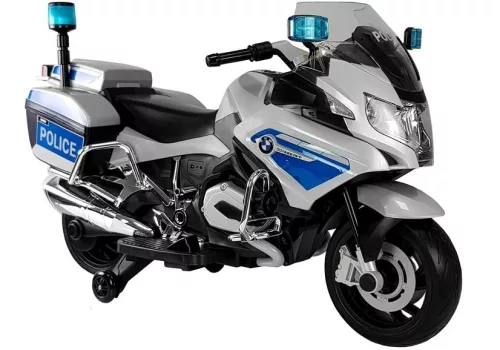 Policyjny motor BMW R1200 zwraca na siebie uwagę już z dużej odległości. W jego konstrukcji zamieszczono białe i niebieskie światła LED, które znajdują się w przedniej części konstrukcji i na kierownicy, a także z tyłu pojazdu oraz w formie koguta policyjnego — uważamy, że włączenie ich sprawi, że każdy mały kierowca poczuje się jak prawdziwy policjant, a jego bezpieczeństwo i widoczność na drodze zostaną podniesione do najwyższego stopnia. Kolejnym udogodnieniem, stanowiącym dużą pomoc zwłaszcza dla najmłodszych kierowców, jest połączenie konstrukcji motorka z bocznymi kółkami, ułatwiającymi utrzymanie równowagi podczas jazdy.