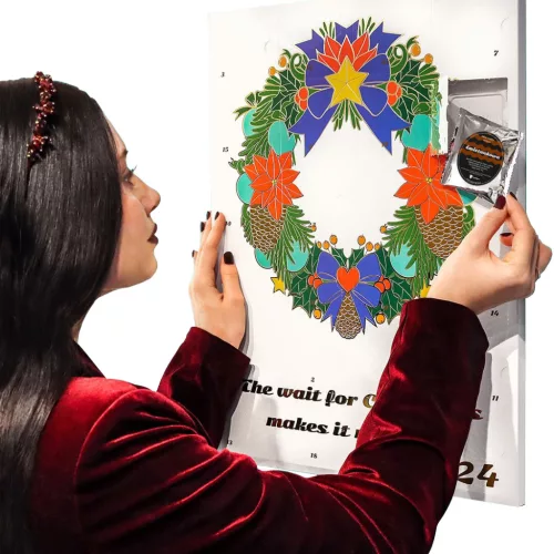 Przed Tobą 24 dni oczekiwania na tę najbardziej magiczną noc w roku. Uczyń swój własny rytuał z każdego dnia przygotowań do świąt i otul go wyjątkowym aromatem świeżo mielonych kaw smakowych! Każde okienko kalendarza adwentowego MAGIC TIME to inny smak w świątecznym charakterze, który wzbogaci magiczną atmosferę Twojego domu jeszcze bardziej! Wizualna szata kalendarza nawiązuje do wieńca adwentowego, który również przywodzi przedświąteczny czas oczekiwania Świąt. Wyjątkowo elegancka oprawa, posiadająca złocone elementy i lakierowany ornament w tle - stanowią cudowną dekorację bożonarodzeniową, która dzięki swojemu minimalizmowi - doskonale wkomponuje się do każdego domowego wnętrza.
