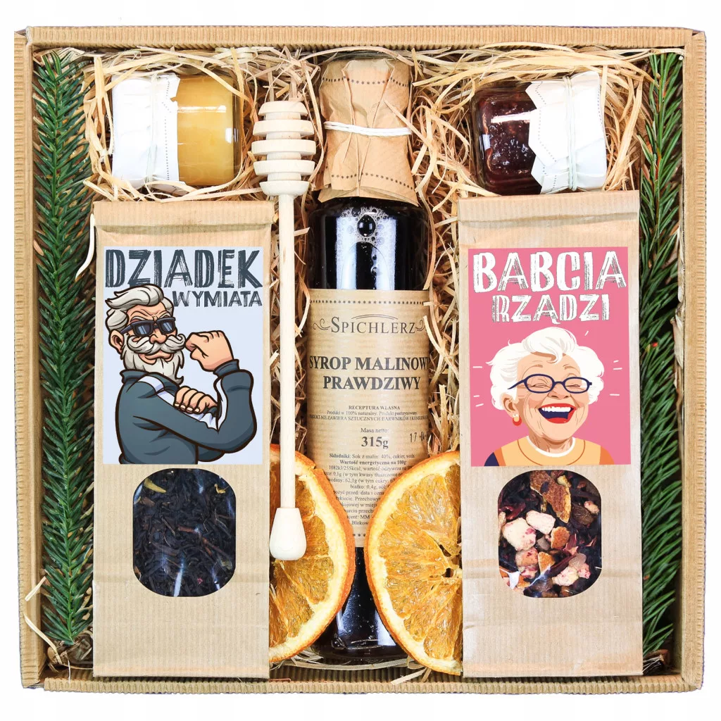 Prezent Dla BABCI i DZIADKA Na Święta Zestaw Herbat Miód Syrop KRAFTOWY