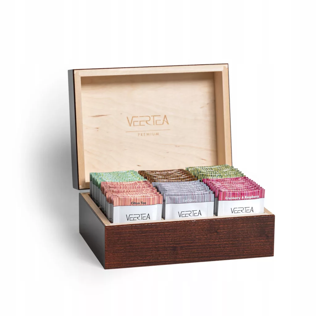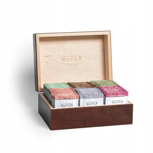 VEERTEA PREMIUM Servizio da tè - scatola chiusa in legno marrone con 96 buste