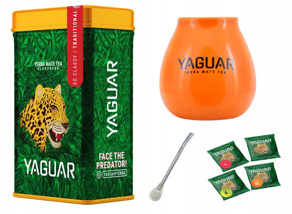 Yaguar to wysokiej jakości yerba mate produkowana zgodnie z wielowiekową południowoamerykańską tradycją. Powstaje z ostrokrzewu uprawianego w zróżnicowanym ekosystemie, bez użycia pestycydów, sztucznych nawozów i innych chemicznych środków ochrony roślin. Po zbiorach, listki i patyczki poddawane są tradycyjnemu procesowi suszenia. Yaguarowi daleko jednak do produktów znanych z silnie goryczkowych akcentów. Wszystko za sprawą długiego okresu sezonowania (leżakowania), który wynosi aż 18 miesięcy. Susz nabiera wtedy szlachetności, a różnorodne elementy roślinne idealnie się harmonizują. Mimo dosyć łagodnego smaku, yerba cechuje się wysoką zawartością naturalnej kofeiny.